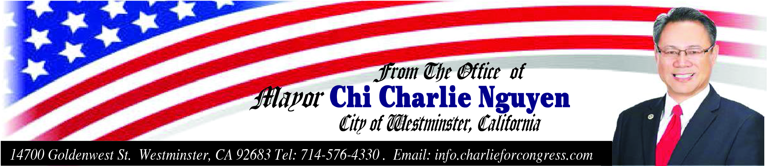 THÔNG BÁO TỪ THỊ TRƯỞNG CHÍ CHARLIE NGUYỄN - Thành Phố Westminster Ứng Cử Viên Dân Biểu Liên Bang Hoa Kỳ – Địa Hạt CA-45: